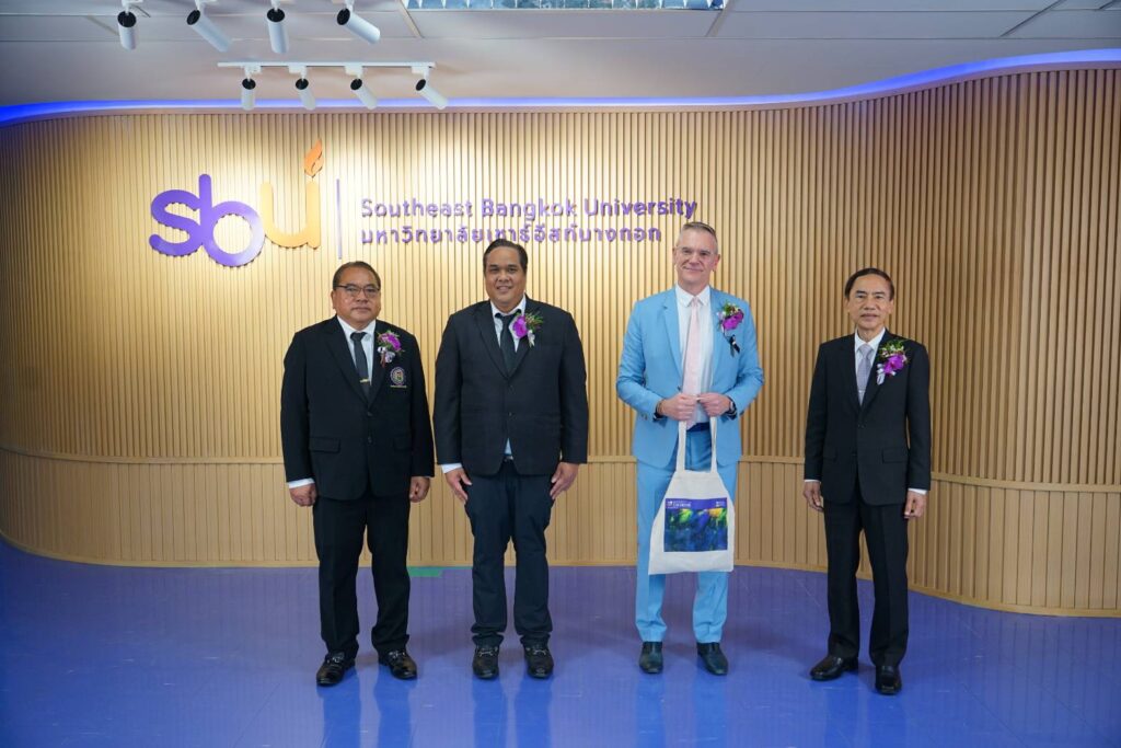 วันจันทร์ที่ ๒๒ ธันวาคม ๒๕๖๘ เวลา ๑๓.๐๐ – ๑๕.๓๐ น. ณ ชั้น ๖ อาคารเฉลิมพระเกียรติ ๗ รอบพระชนมพรรษา มหาวิทยาลัยเซาธ์อีสท์บางกอก (ที่ตั้งบางนา) กรุงเทพมหานครทำพิธีเปิด การดำเนินการหลักสูตรความร่วมมือ ระหว่าง มหาวิทยาลัยเซาร์อีสท์บางกอก และ Universiby of Chichester พิธีกรกล่าวต้อนรับและแจ้งวัตถุประสงค์ของงาน กล่าวต้อนรับโดย ดร.ภัทรดา รุ่งเรือง รองอธิการบดีฝ่ายบริหารและวางแผม มหาวิทยาลัยเซาธ์อีสท์บางกอก รับชมวิดีทัศน์แนะนำมหาวิทยาลัยและแนวคิดความร่วมมือทางวิชาการ กล่าวเปิดงานโดย ดร.พันธุ์เพิ่มศักดิ์ อารุณี รองปลัดกระทรวงการอุดมศึกษา วิทยาศาสตร์ วิจัยและนวัตกรรม กล่าวแสดงความยินดี โดย ศ.พิเศษ ดร.วรภัทร โตธนะเกษม